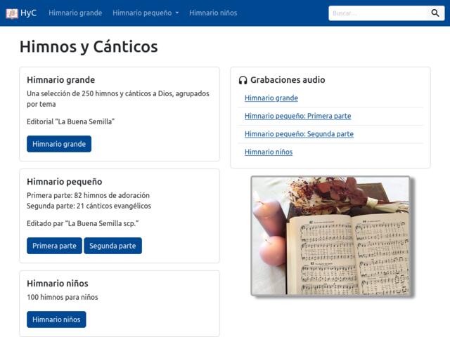 Este portal está vinculado a Biblicom, y permite consultar los cánticos de los himnarios grande y pequeño «Himnos y Cánticos».